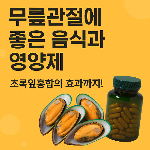 오늘은 무릎관절에 좋은 음식과 영양제, 그리고 직접 복용 중인 초록잎홍합의 효과에 대해 정리해 보겠습니다.