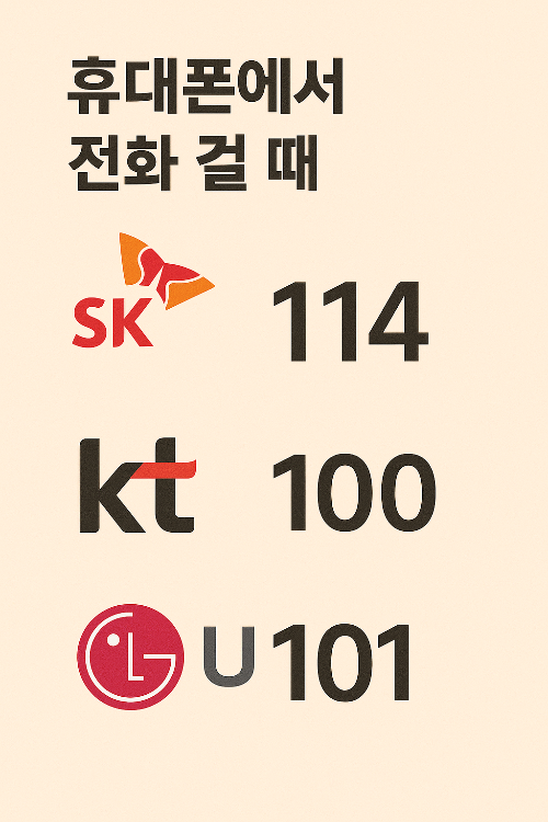 | SK텔레콤 | 080-011-6000 | 휴대폰에서 114 | 무료 |
