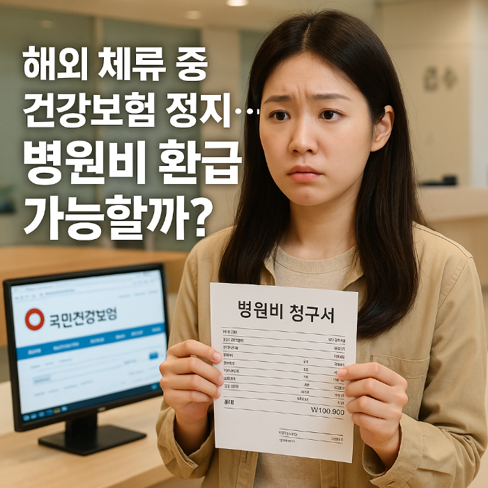 해외유학이나 장기 출국으로 인해 급여정지 상태였다면, 진료 후라도 자격 회복을 통해 병원비 일부 환급이 가능합니다.꼭 건강보험공단 자격 회복 서류를 발급받아 병원에 제출해보세요.