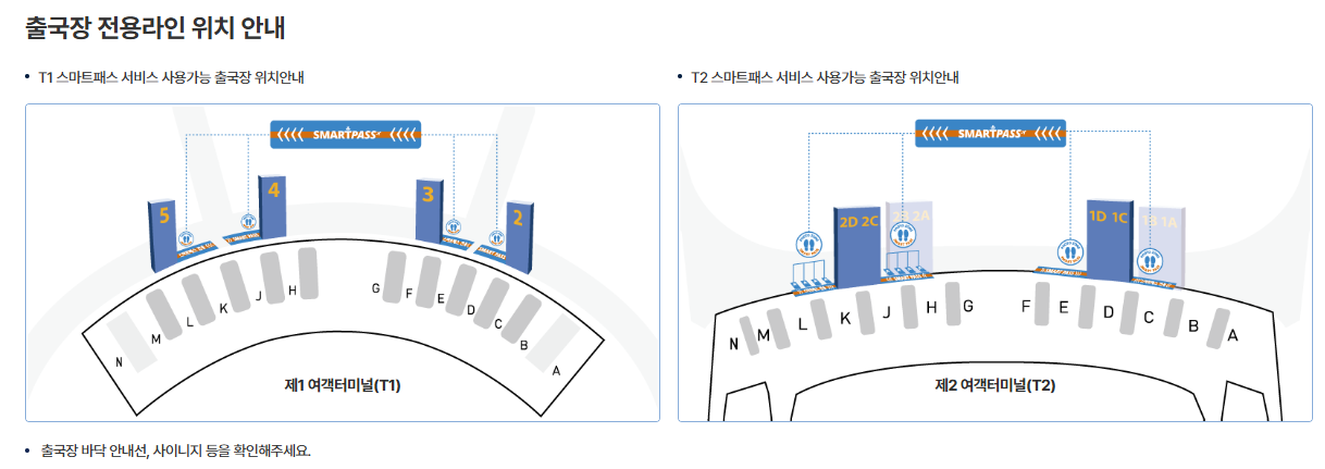 - 제1터미널: 2, 3, 4, 5번 출국장※ 2번 출국장 = 스마트패스 전용 (2025년 7월부터 확대 운영)