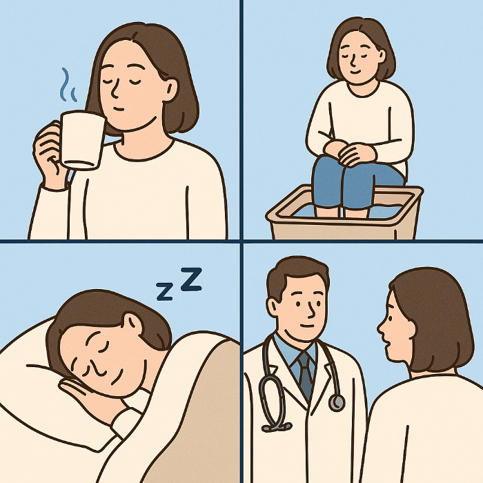 - 족욕이나 반신욕저녁마다 따뜻한 족욕으로 말초혈관을 열어주면 혈류 개선에 효과적입니다.