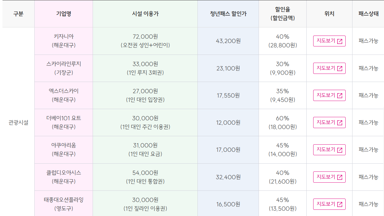 시설명원가청년패스 가격할인율