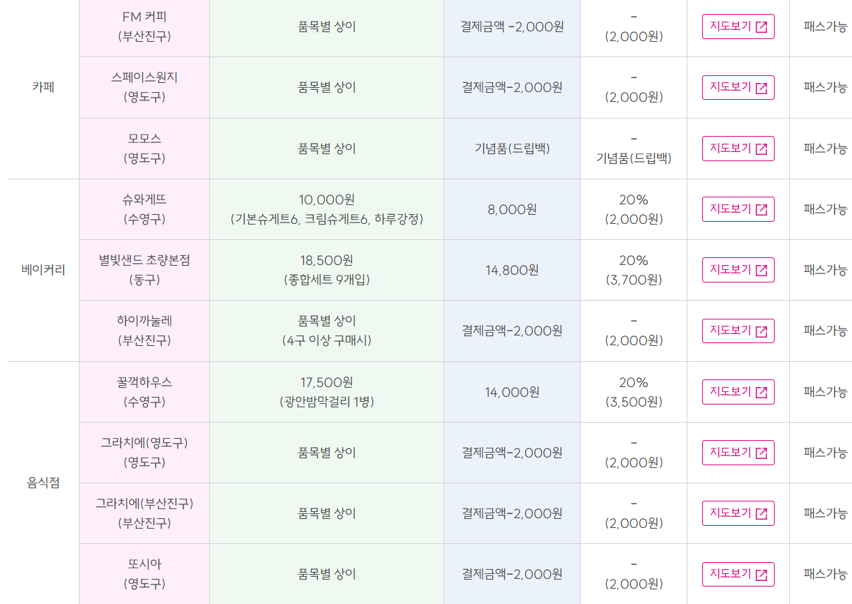 | 카페 | FM커피, 스페이스왓지 외 | 2,000원 할인 or 기념품 증정 |