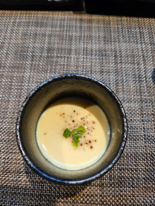 갈비뼈와 한우힘줄로 우린 육수로 만든 계란찜