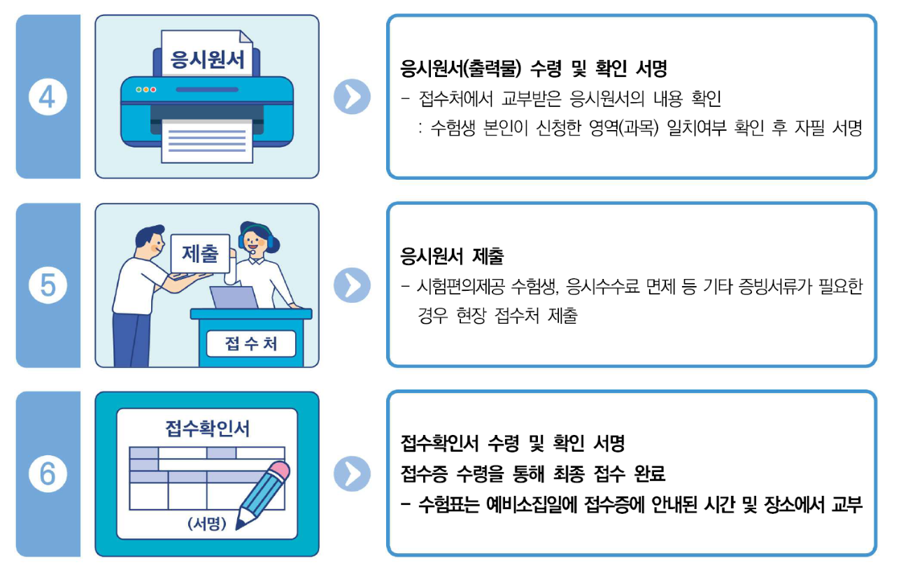- 응시 영역, 수수료 납부, 사진 등록 등을 온라인에서 먼저 처리할 수 있게 하여 오류를 최소화하기 위해