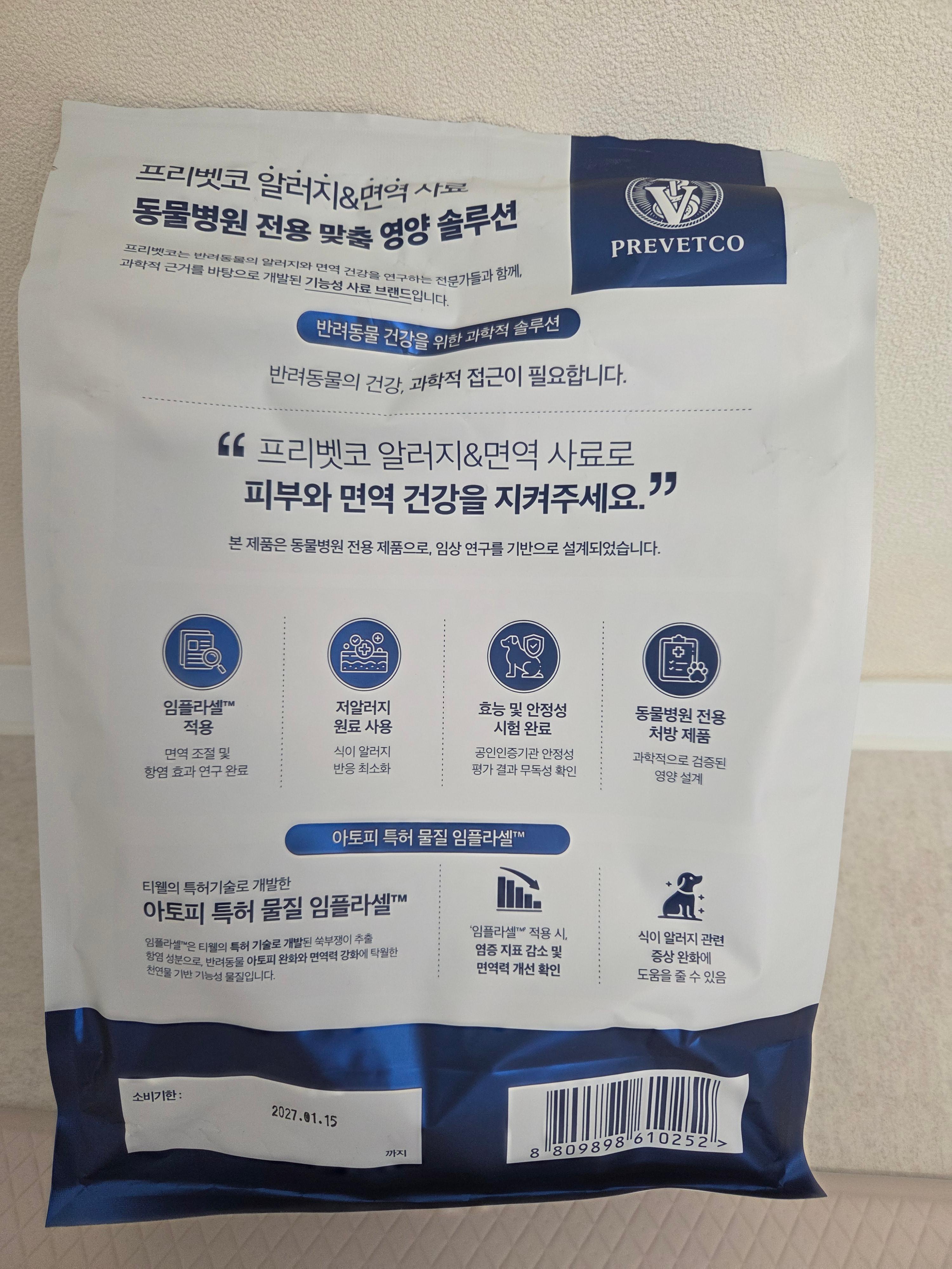 프리벳코 A/i알러지&면역 개선 사료라 더 관심이 갔어요~