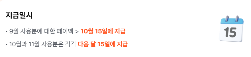 - 페이백은 양도 불가, 지급일로부터 5년간 사용 가능.