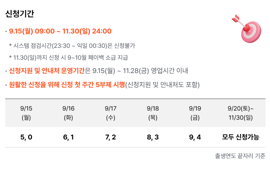 - 이후(9월 20일~11월 30일): 요일제 제한 없이 언제든 신청 가능