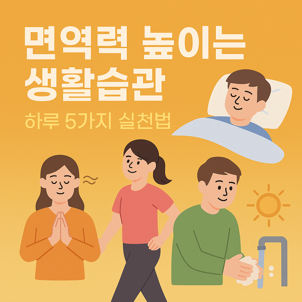 면역력은 특별한 비법으로 지켜지는 게 아니라, 우리가 매일 반복하는 생활습관 속에 답이 있습니다. 충분한 수면, 꾸준한 운동, 스트레스 해소, 생활 위생, 비타민 D 보충. 이 다섯 가지만 잘 챙겨도 면역력은 눈에 띄게 달라질 거예요. 오늘부터 하나씩 실천해 보시면, 잔병치레 없이 훨씬 더 건강한 일상을 보내실 수 있을 겁니다.