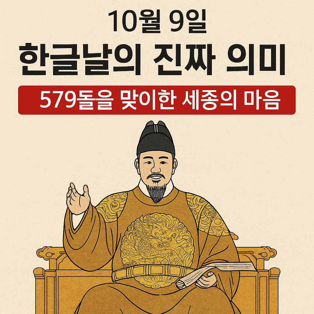 매년 10월 9일은 대한민국의 자랑스러운 기념일, 한글날입니다.2025년은 한글이 세상에 반포된 지 579돌이 되는 해로,한글의 창제 정신과 우리말의 아름다움을 되새기는 뜻깊은 날이에요.