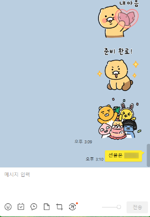 | 깜짝 선물 공개 | "생일 선물로 [스포방지]에어팟 준비했어!" |