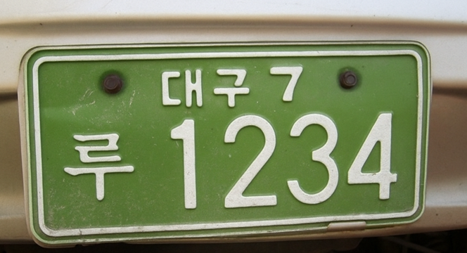 적용 대상: 2006년 이전 등록된 일반 차량번호판 예시: 초록색 바탕 + 흰색 글씨