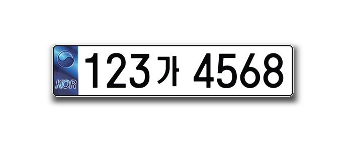 현재 사용 중인 자동차 번호판은 다음과 같은 구조로 구성됩니다: