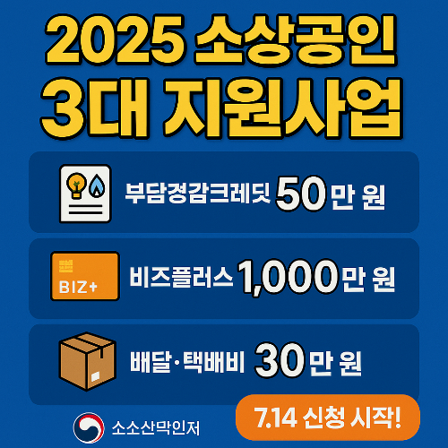 - 대상자: 2024년 또는 2025년 연매출 3억 원 이하 소상공인 (복수 사업체는 1개만 신청 가능)